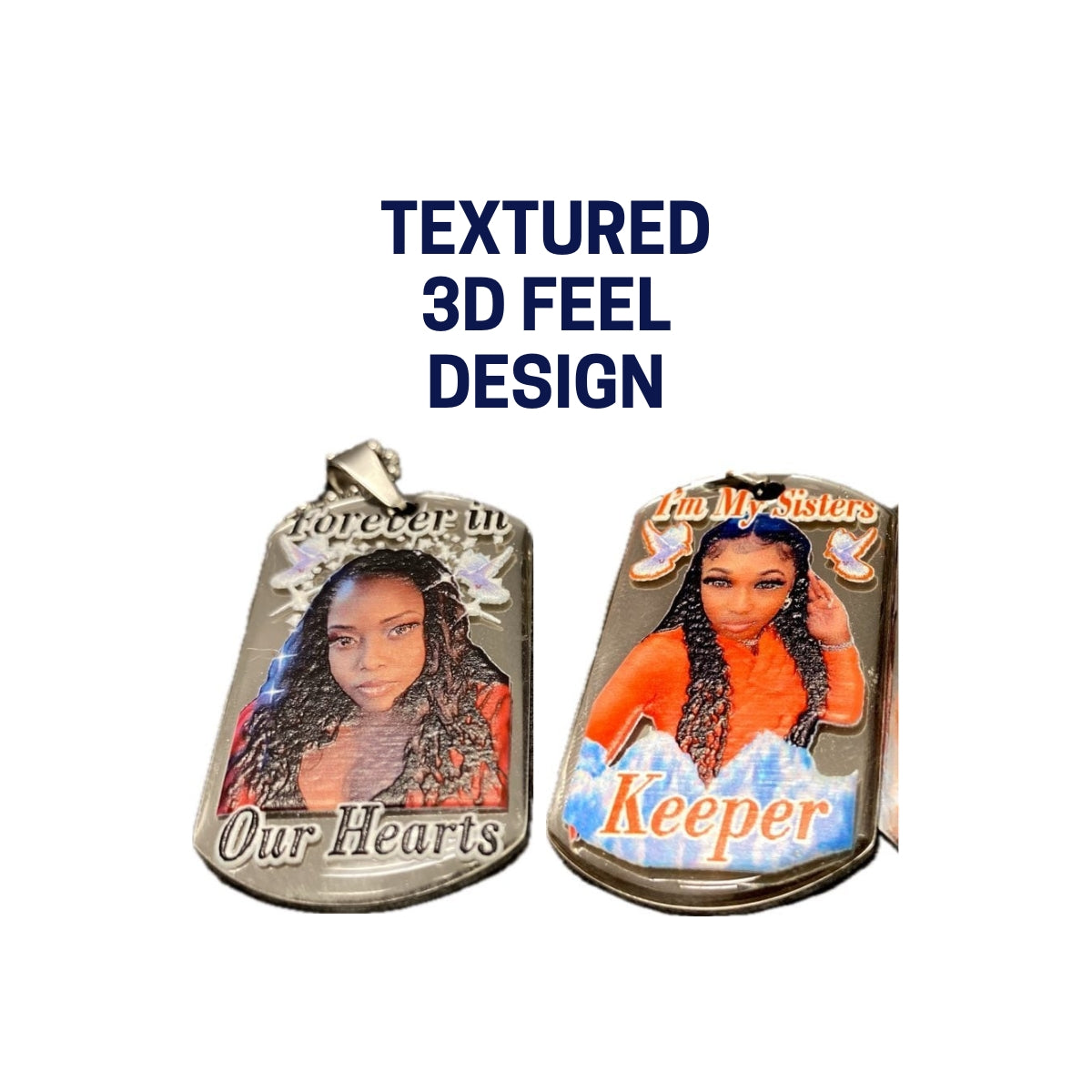 Crafted in durable stainless steel with a sleek silver finish, each pendant includes a matching silver chain. Choose between a Textured 3D surface or a Smooth Resin-Coated finish for your preferred look. For an extra personal touch, include custom text perfect for names, dates, or a short memorial phrase.